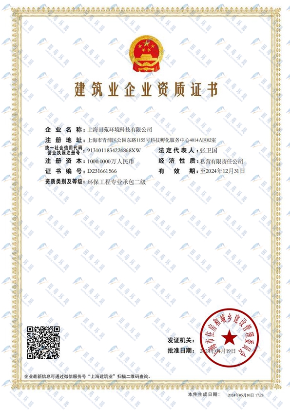 《中國環(huán)境服務認證證書【環(huán)保管家一級】》
